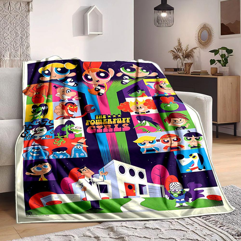 1pc Powerpuff Girls Science Lab Cozy Print Blanket Lightweight Warm Flannel Throw Blanket For Sofa, Bed, Living Room