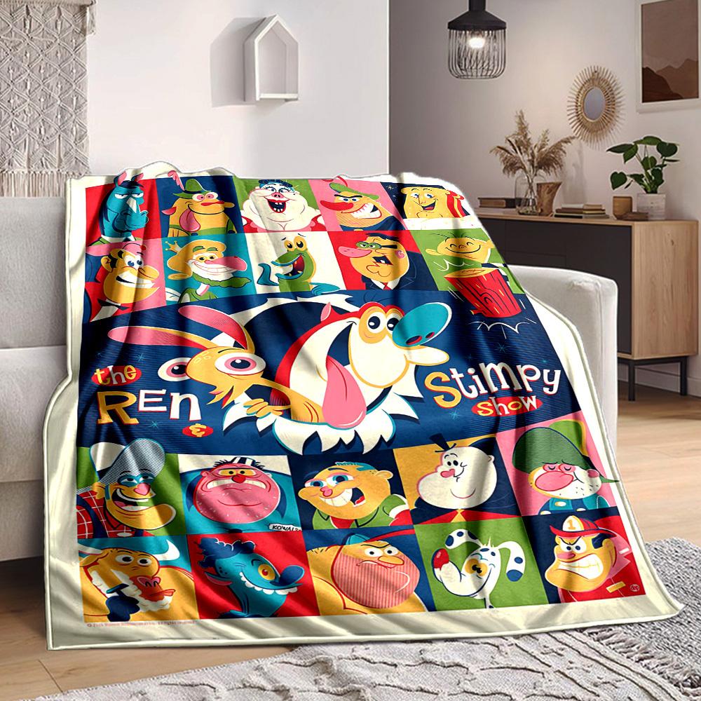 1pc The Ren & Stimpy Show Cozy Print Blanket Lightweight Warm Flannel Throw Blanket For Sofa, Bed, Living Room