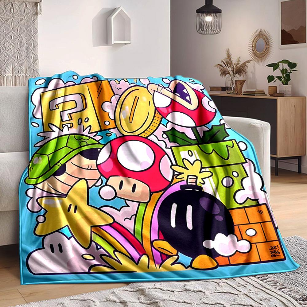 1pc Mario Adventure Flannel Blanket, Soft Skin Friendly with Digital Printing, Various Sizes Available for Family, Friends, Birthday