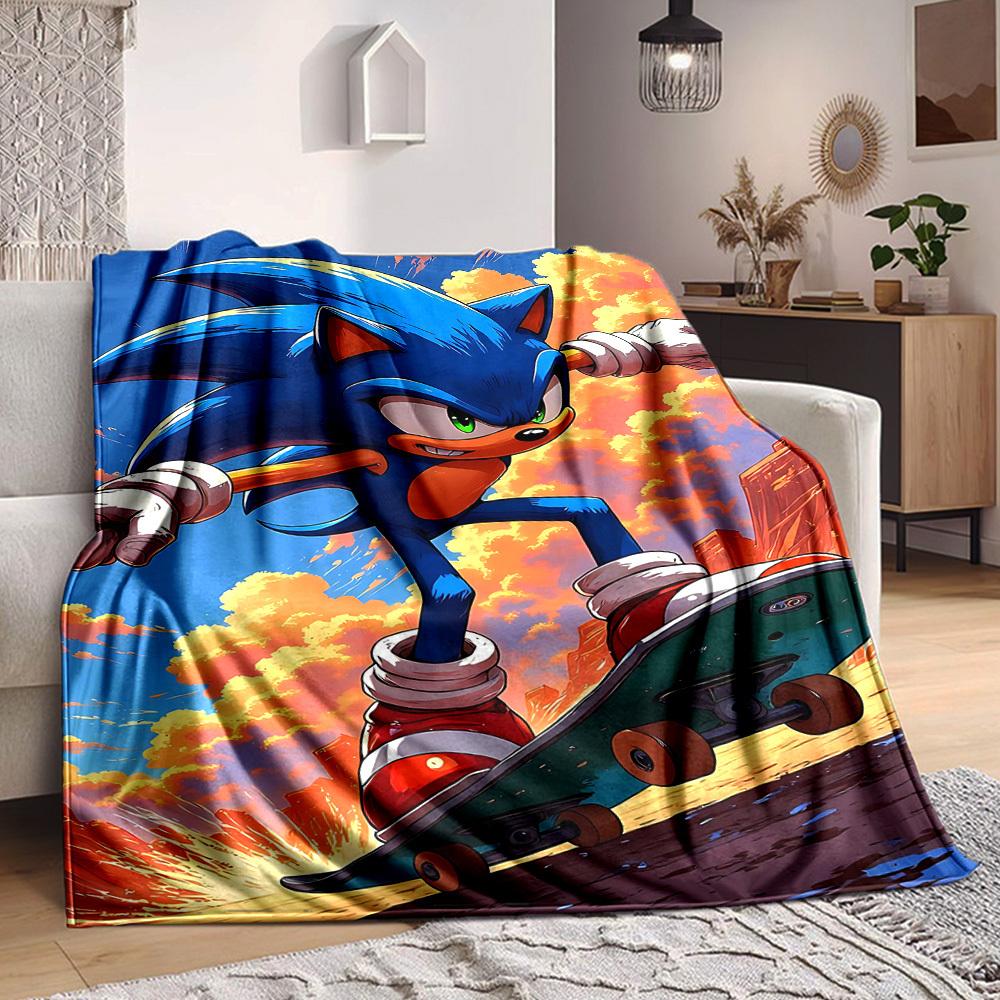 1pc Sonic Skateboarding Flannel Blanket, Soft Skin Friendly with Digital Printing, Various Sizes Available for Family, Friends, Birthday