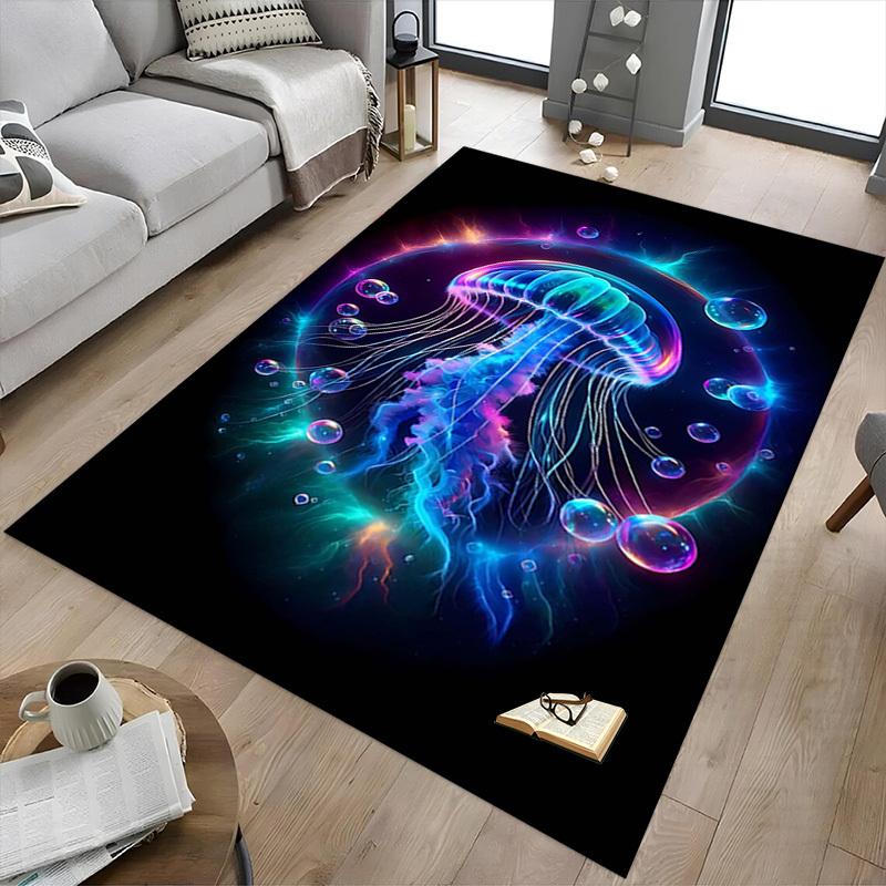 1PC Jellyfish, Neon Extra Large Non Slip Floor carpet, Office, family, bedroom, Studio Large Area Rug Indoor Rugs, , Vibrant Colors