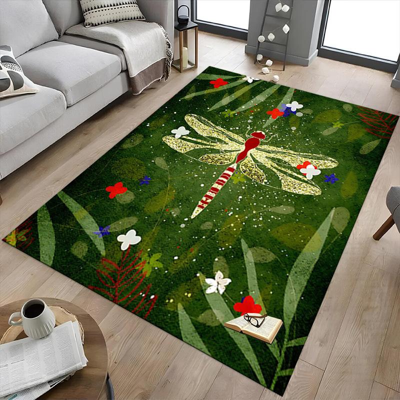 1PC Dragonfly Flowers Extra Large Non Slip Floor carpet, Office, family, bedroom, Studio Large Area Rug Indoor Rugs, , Vibrant Colors