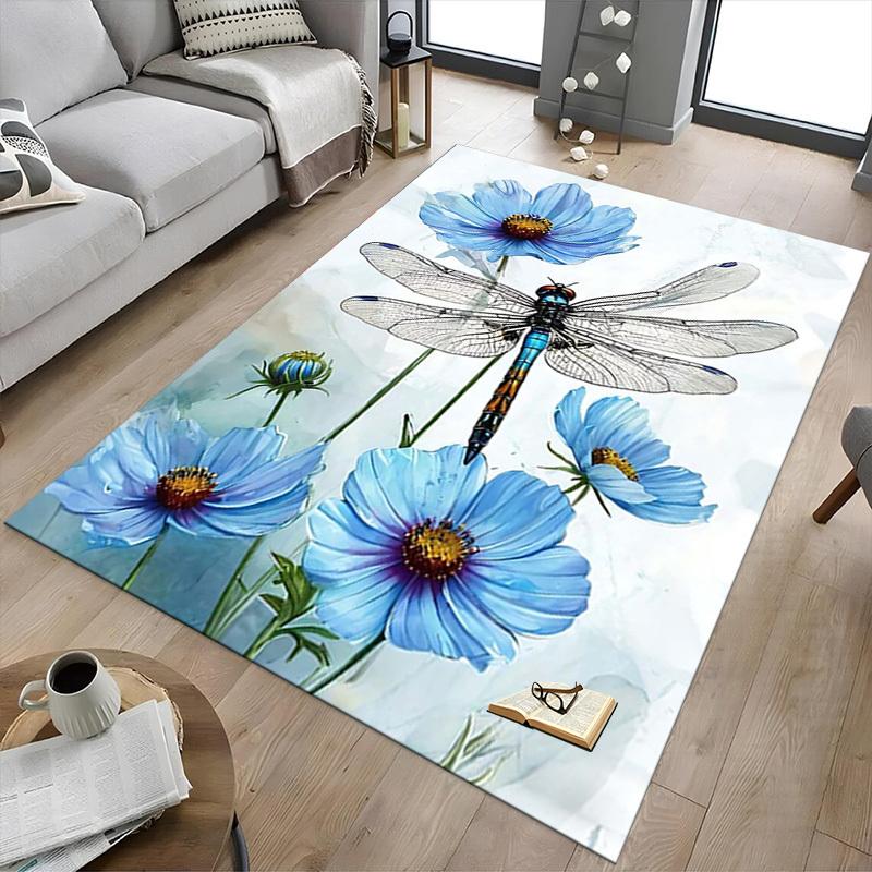 1PC Dragonfly Flowers Extra Large Non Slip Floor carpet, Office, family, bedroom, Studio Large Area Rug Indoor Rugs, , Vibrant Colors
