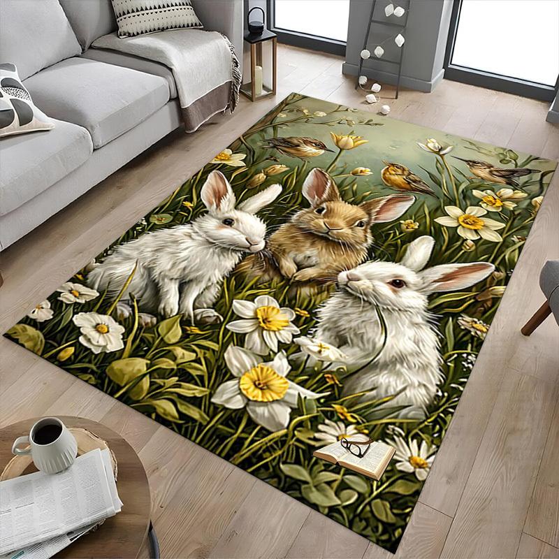 1PC bunnies flowers Extra Large Non Slip Floor carpet, Office, family, Studio Large Area Rug Indoor Rugs, Bold Statement Piece
