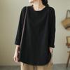 Bavlněná mikina Volný velký střih Top s dlouhým rukávem Pohodlná Jednobarevná Košile Literární Kulatý výstřih Ležérní top