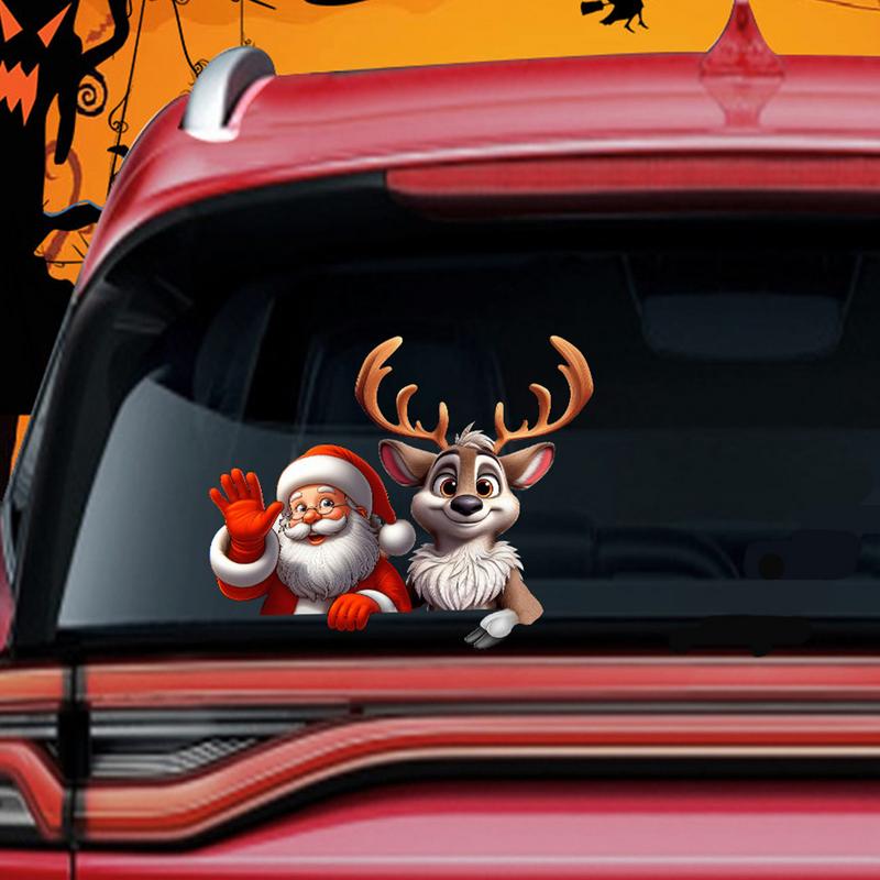 Car Window Decals Christmas Laptop Decoration Decals Santa Claus Elk Car Rear Window Sticker Decorative Vehicle Decal For Wall