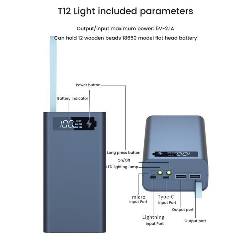 12X18650 Charging Battery Case Welding Free Battery Storage Box DIY Power Bank Case T12 with Light 18650 Battery Box