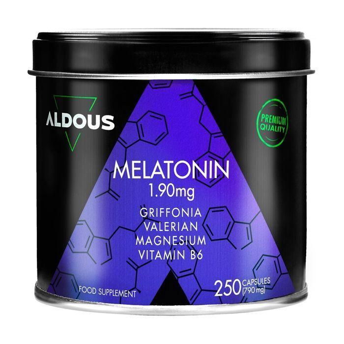 Aldous bio - mélatonine 1,9 mg - 250 nuits - avec 5htp, magnésium, valériane, vitamine b6 – pilules pour bien dormir, insomnie