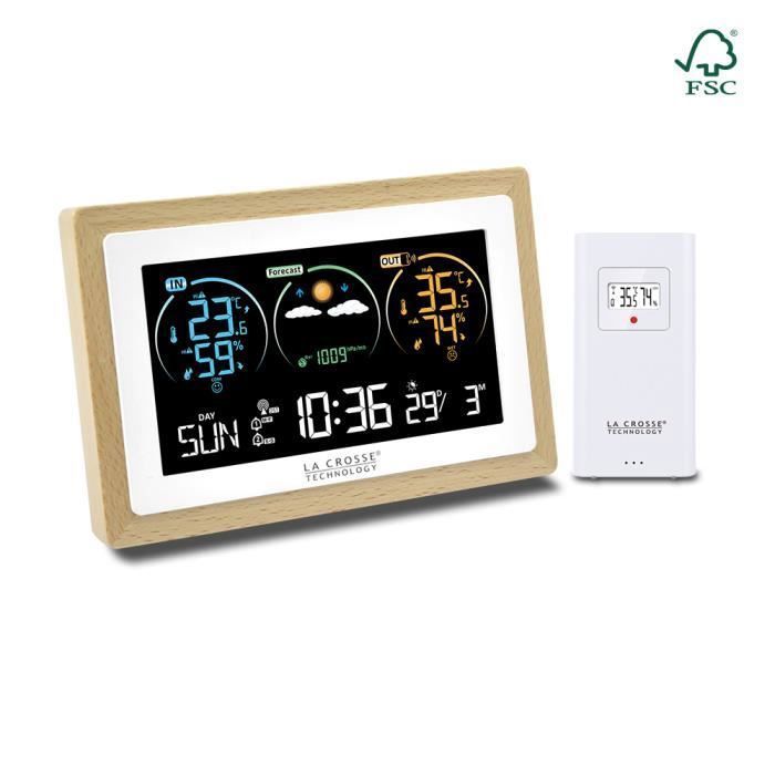 Station météo - la crosse technology - ws6283w-mac - écran coloré - contour bois - intérieur