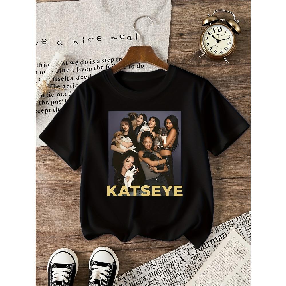 Dívčí tričko s potiskem vhodné pro děti s motivem KATSEYE, ležérní, krátký rukáv, kulatý výstřih