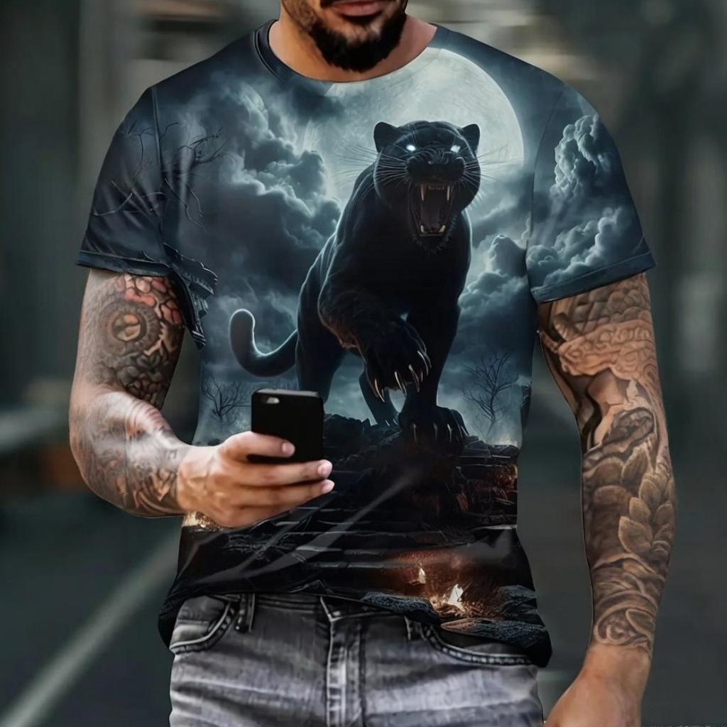 Summer New Men's T-shirt Fashionable Comfortable 3D Animal Printed Loose Versatile Round Neck Large Size Short Sleeve T-shirt
