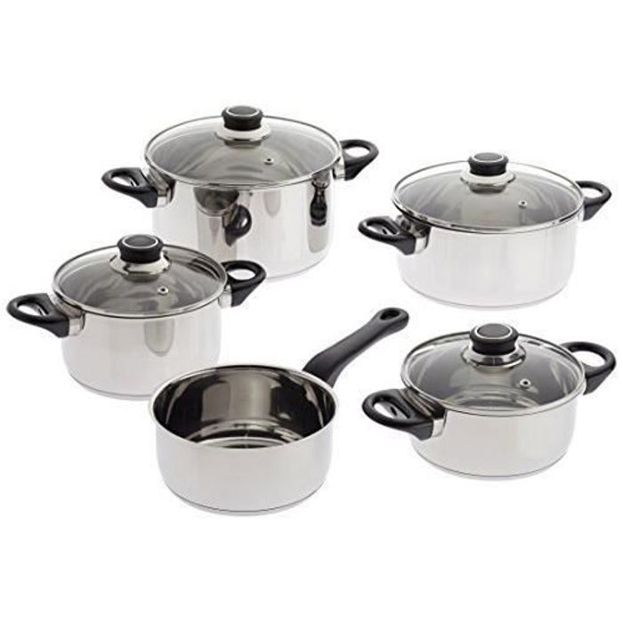 Batterie de cuisine - krüger - apollo - 9 pièces - acier affiné - compatible induction