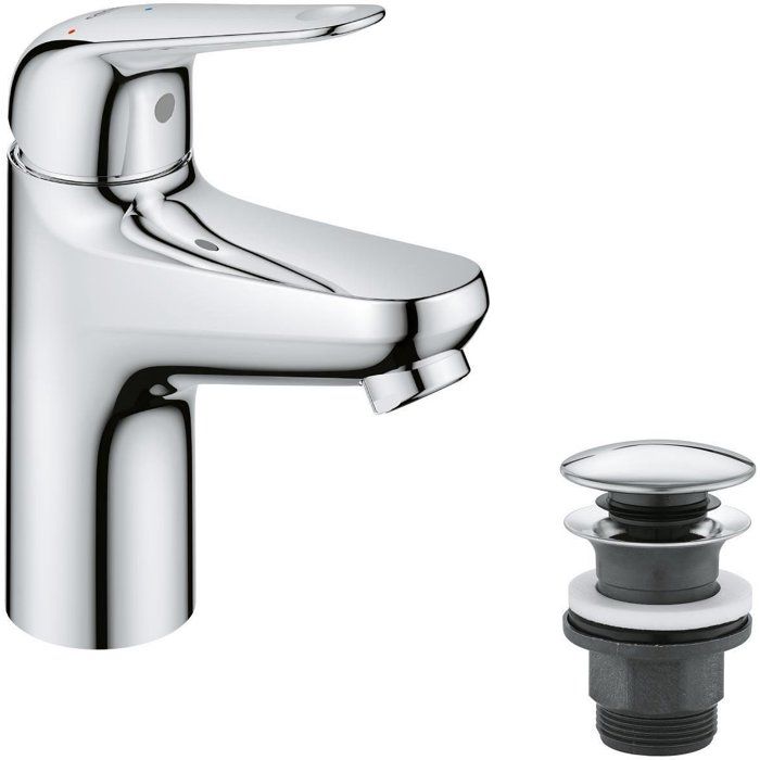 Mitigeur monocommande lavabo - GROHE Swift - 24323001 - Chromé - Taille S - Ouverture Eau Froide - Economie d'eau - Vidage clic clac