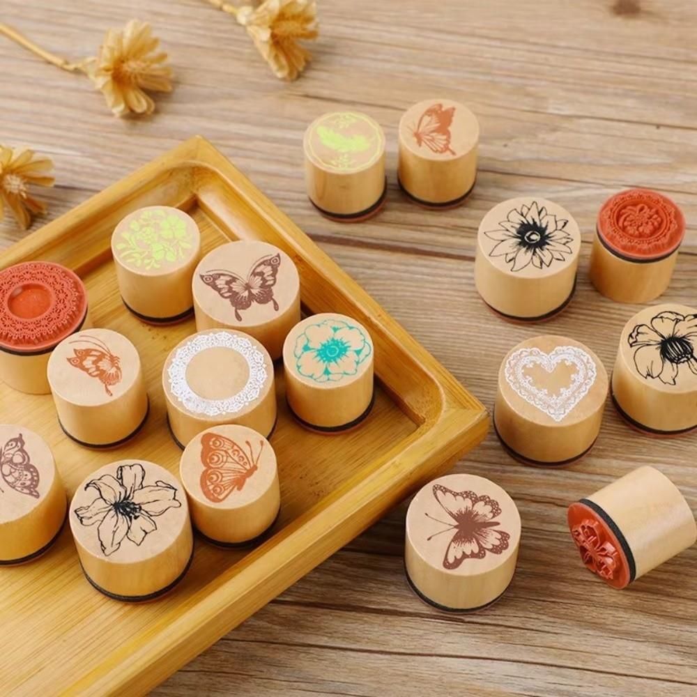 DIY Craft Wooden Stamp Set Butterfly Flower Themed Wood Rubber Stamp Album Making