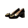 New High-heeled Single Shoe with Round Toe, Square Buckle and Thick Heel, Women's Shoes