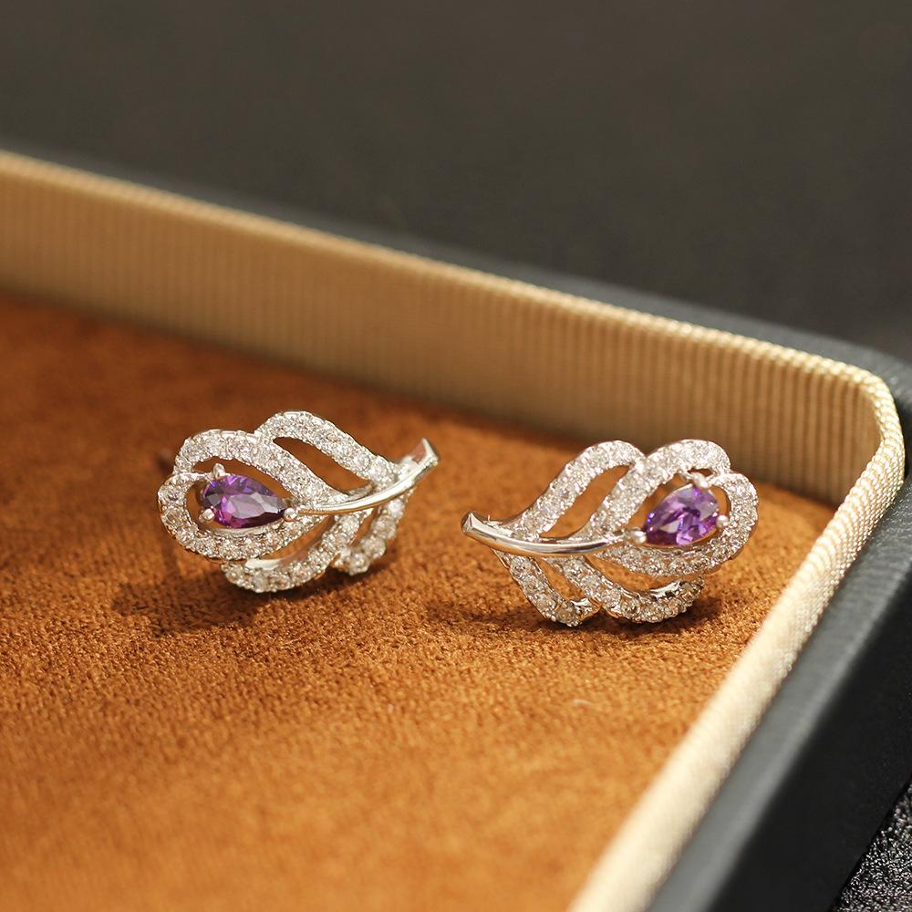 Simple temperament Korean version stone-inlaid purple white feather earrings gold-plated versatile women's stud earrings niche