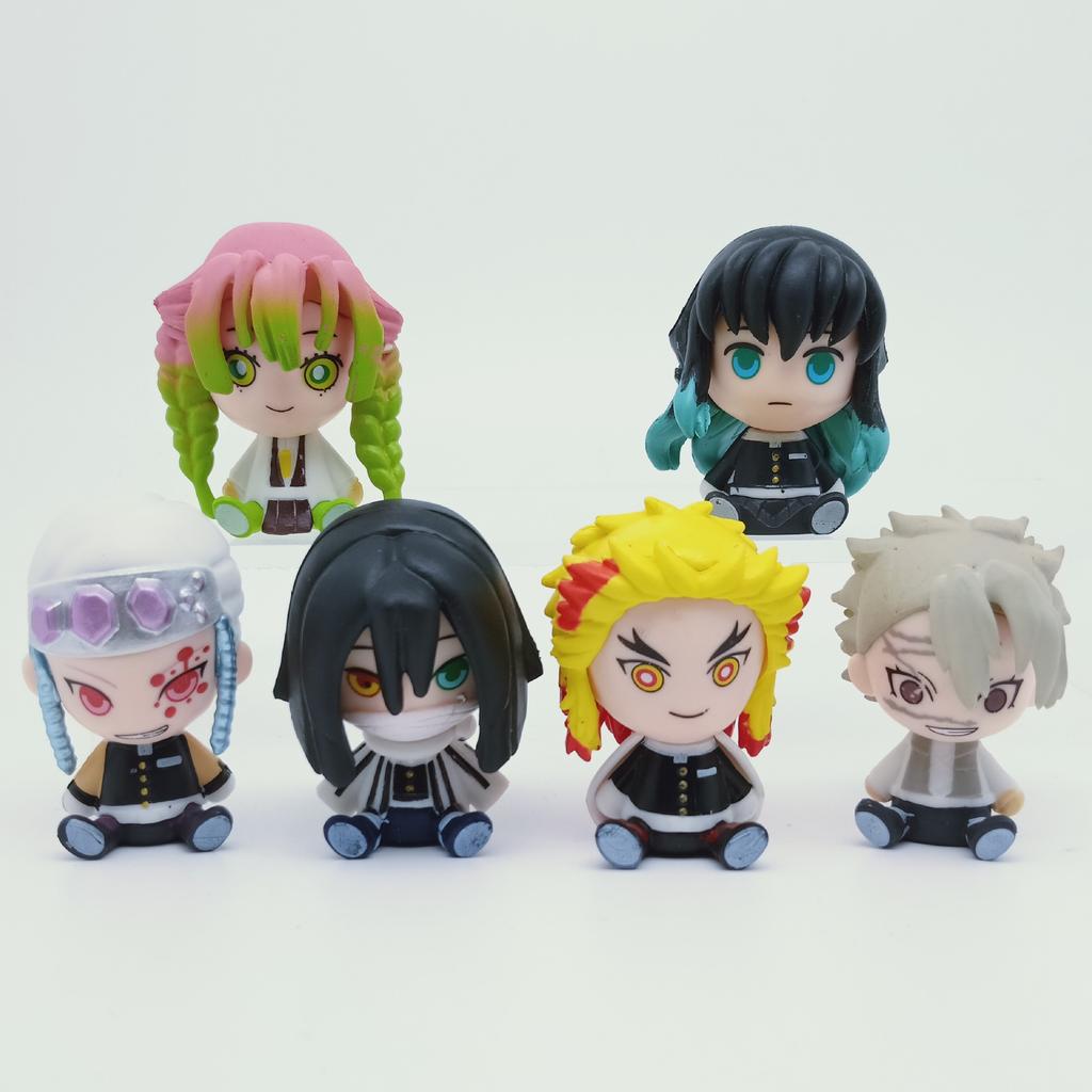 6Pcs/1Set Anime Demon Slayer Figure Kyoujurou Q Version Muichirou Model Sanemi Toy Obanai Kanroji Mitsuri Set Doll Decorate Gift