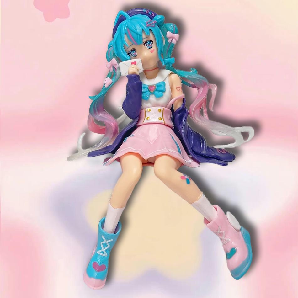 13.5cm Hatsune Miku Figure Pink Sakura Action Sitting Position Anime Model PVC Gift Car Decoration Doll Model Kids Toys For Fans
