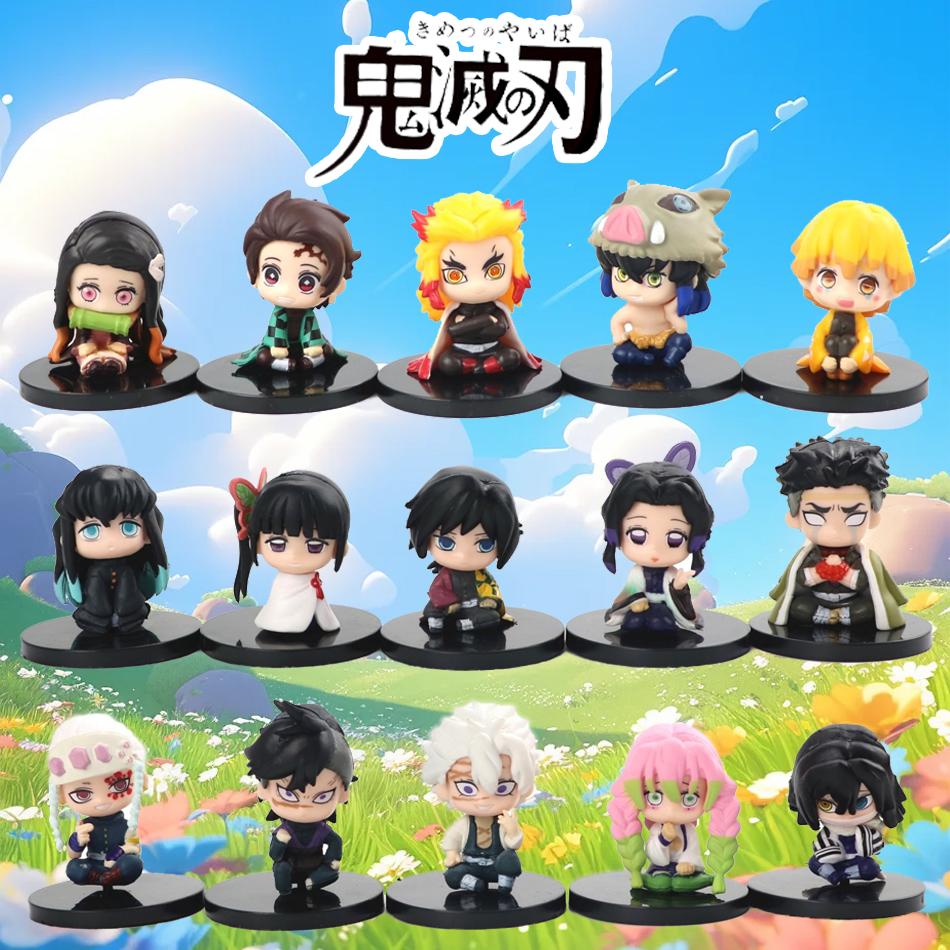5-15pcs Q Version Demon Slayer Sitting Ghost Doll Tanjiro Nidouzi Inosuke Zenizu Toy Figural PVC Model Gifts
