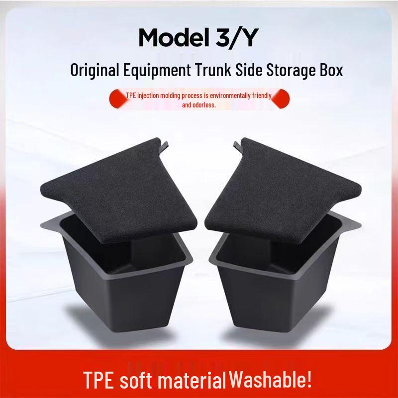 Fits Tesla Model Y/3: TPE Trunk Side Pocket Storage Bin Accessory