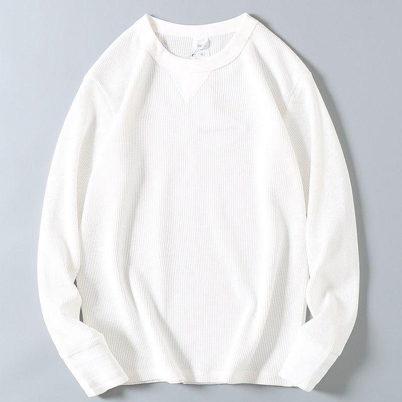 Export Factory Leftover Stock Spring New American Waffle Long-Sleeved T-shirt Men's Solid Color Casual round Neck Bottoming Shirt Fashion