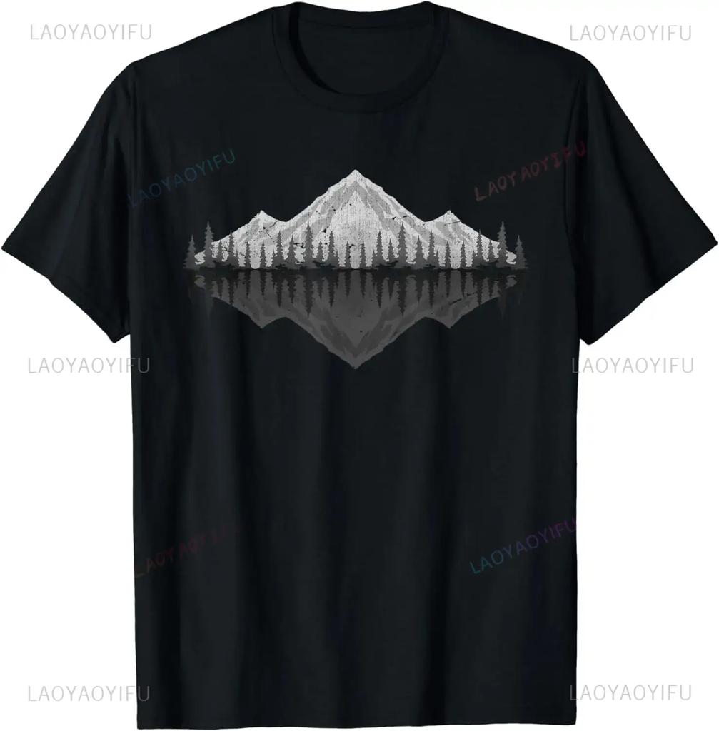 Wildlife Nature Hiking Hiker Forest Reflection Mountain TShirt Outdoor Clothes Mens T Shirt Graphic Streetwear Oneck Tops Tee