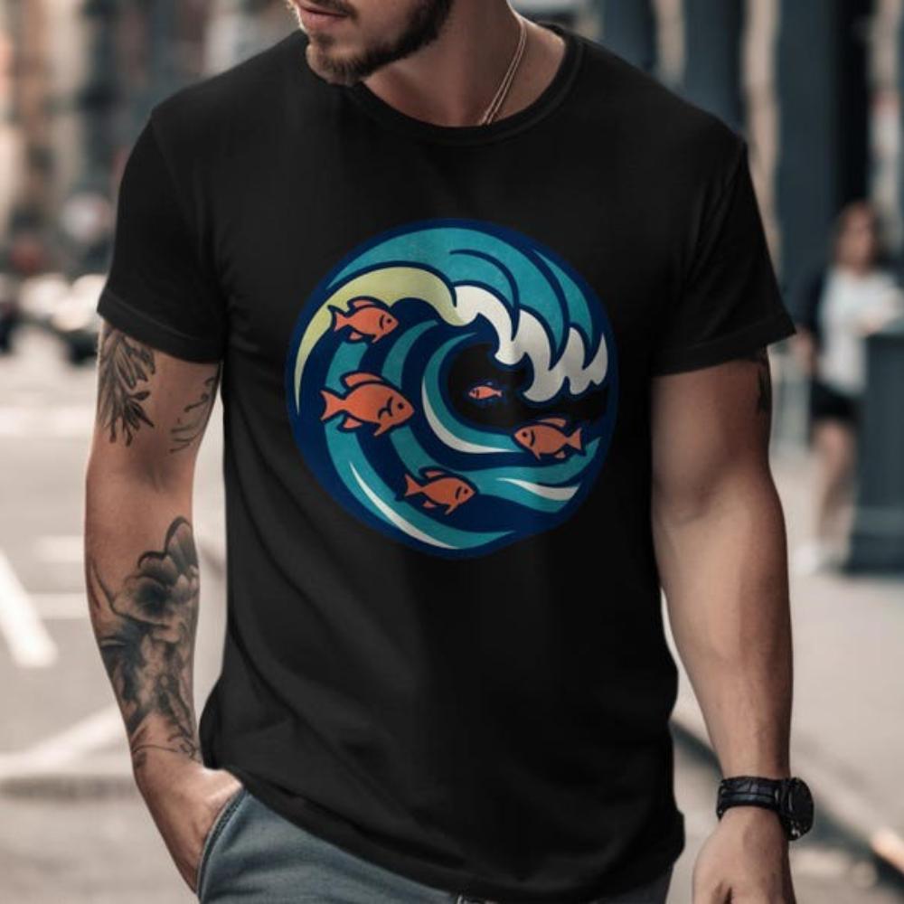 Wave and Goldfish TShirt Ocean Graphic Tee Sea Lover Gift Modern Art Men Summer Shirt Casual Daily Life Women Cotton Tops