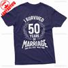 I Survived 50 Years of Marriage Letters Printed Tshirt Tops Commemorate Style Crewneck Tee Streetwear Woman Man Cotton Tshirt