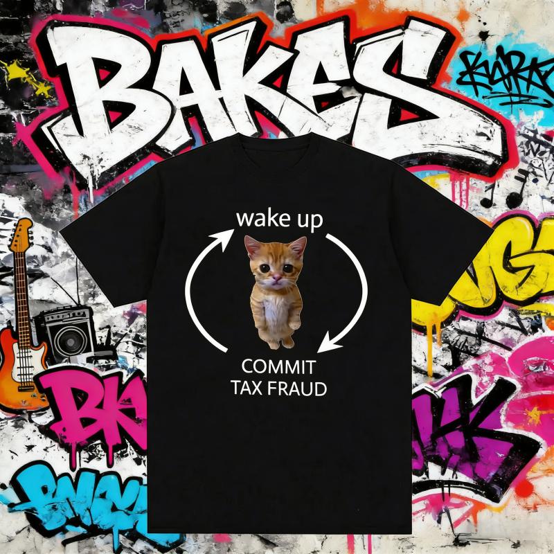 2025Summer Wake Up Act Silly Meme Graphic Funny Cute Cat Print Short Sleeve Men Women Oversized 100 Pure Cotton Printed Tshirt