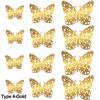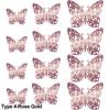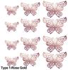12Pcs/Pack 3D Hollow Out Butterfly Stickers Gold/Silver/Rosegold Mirror Decals Metal Texture Wall Art Wedding Party Supplies