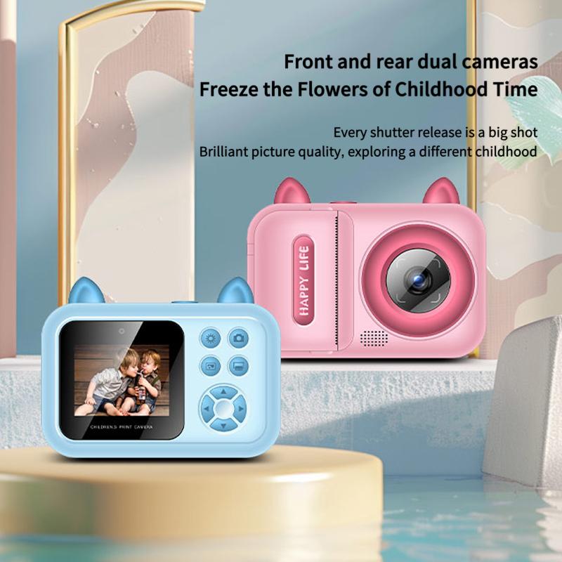 Portable children's hot print camera 1080P high-definition rechargeable camera with printing roll 8GB card instant printer.