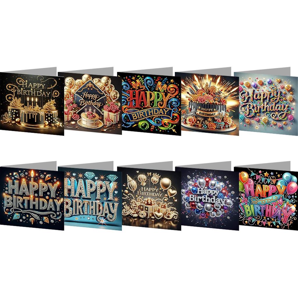 10pcs DIY Diamond Painting Greeting Card Set Birthday Designs Diamond Art Handmade Cards for Birthdays Thanksgiving and Holidays