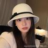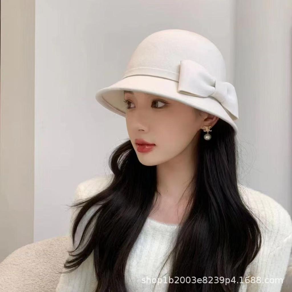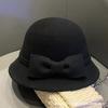 Temperament: woolen bow pot hat for women, winter versatile elegant warm bucket hat, Hepburn-style French daughter topper