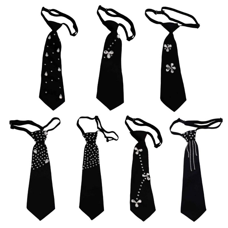 Elegant Rhinestones Embellished JK Shirt Tie for Women Men Harajuku Student Uniform Adjustable Pre Tied Black Necktie