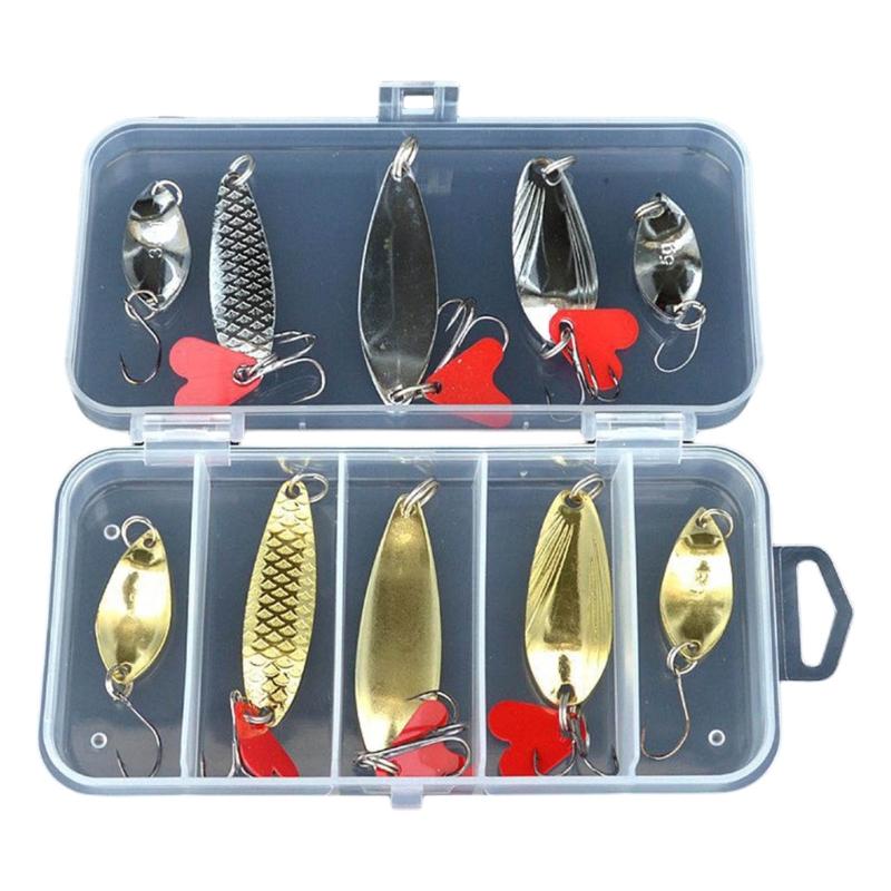 10pcs Fishing Spoons Metal Lures with Hook Tackle Box Hard Fishing Lures Fishing Baits for Trout Spinner Baits