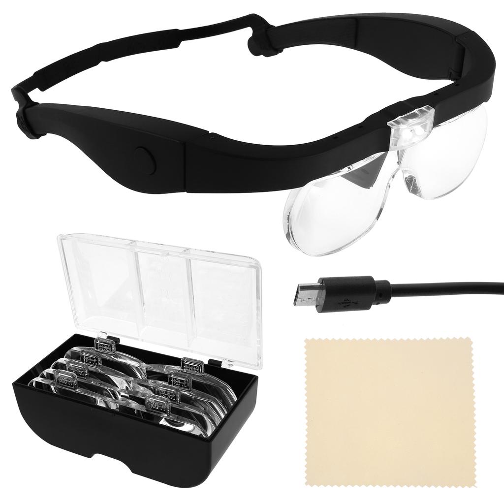 Head-mounted Magnifying Glasses with Light USB Rechargeable Magnifier 1.5X 2.5X 3.5X 5X Magnifier for Reading Watchmaker Repairs