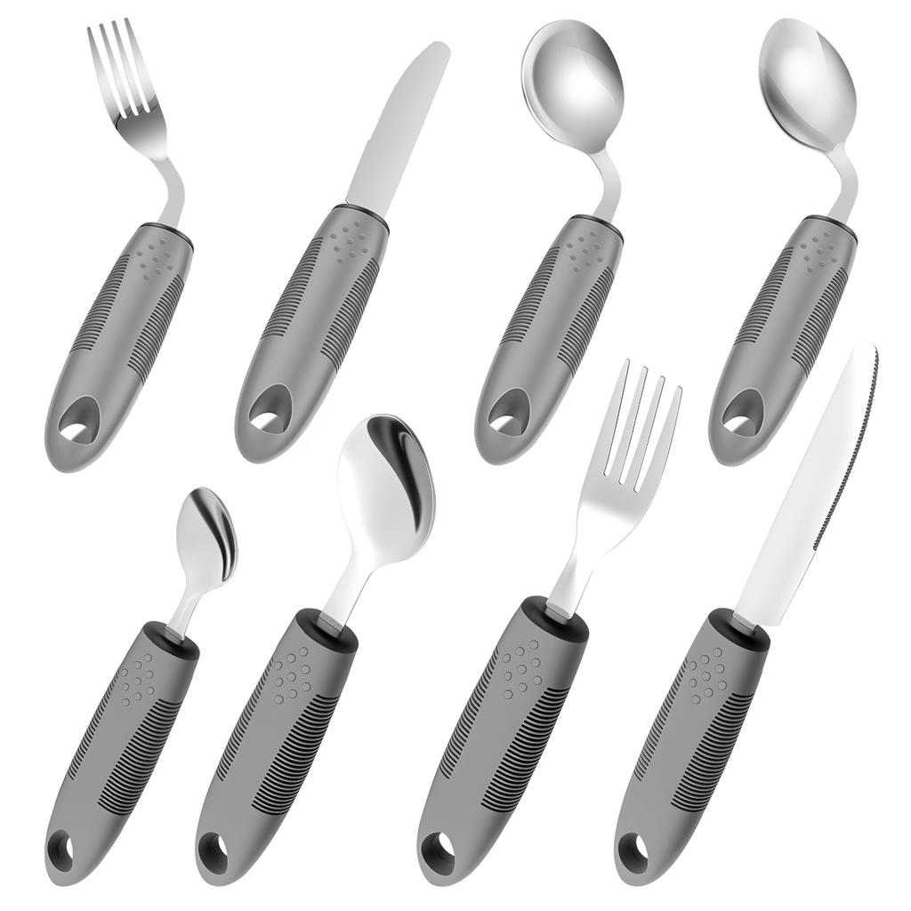 4ks adaptivního nádobí s ochranou proti otřesům rukou pro starší pacienty s třesem rukou, nůž, vidlička, lžíce, nádobí z nerezové oceli