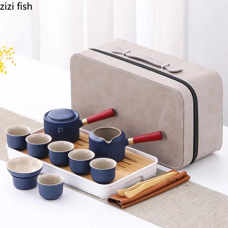 Portable Travel Tea Set Multi Person Kung Fu Tea Set Teapot Teacup Storage Jar Teas Tray Teas Infuser Filter Pot Teaware Sets