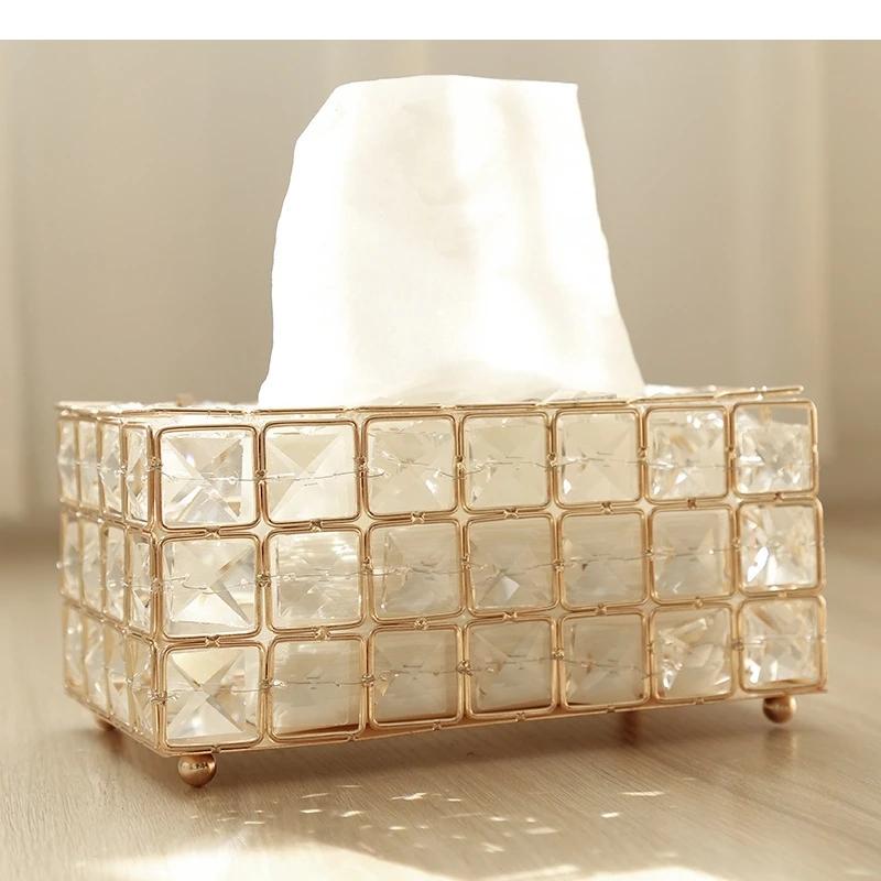 Simple Metal Crystal Tissue Box Living Room Tea Table Napkin Paper Removable Boxes Household Products