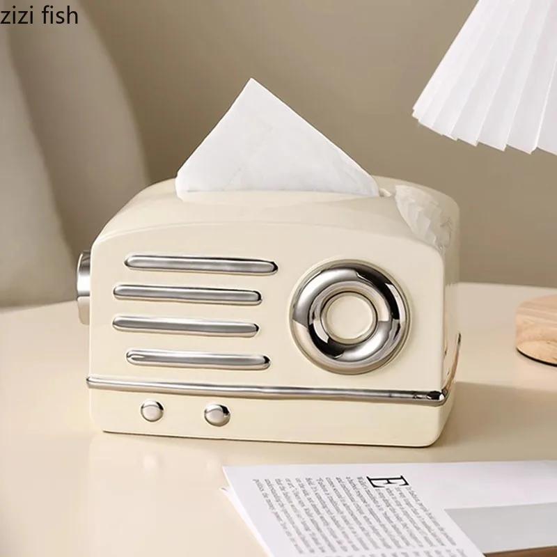 Radio Shape Ceramic Tissue Box Paper Towel Holder Napkin Paper Box Removable Tissue Box Tissue Storage Container Household Items