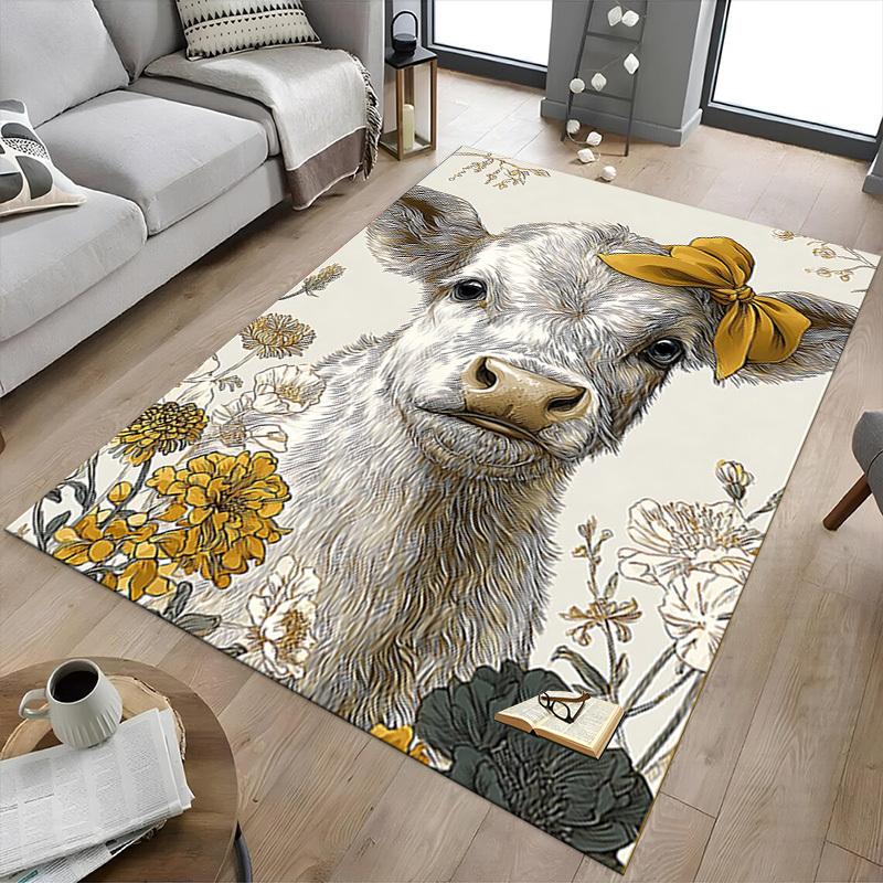 1PC Cow Floral Extra Large Non Slip Floor carpet, Office, family, bedroom Large Area Rug Indoor Rugs, Vibrant Colors