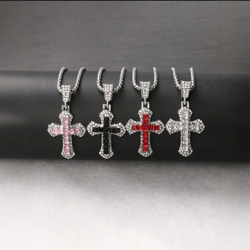Cross with Diamond Pendant Necklace Autumn and Winter Long Sweater Chain Street Hip Hop Necklace
