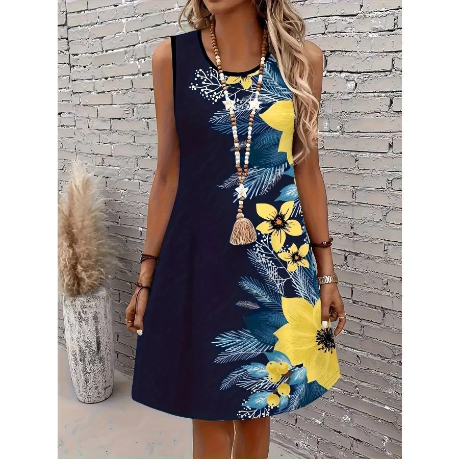 Women's Sleeveless Crew Neck Tank Dress Vibrant All-Over Floral Print Dresses Machine Washable Elegant Summer Dress Y2k Clothes