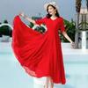 Women's Abstract Leaf Print Maxi V-neck 3/4 Sleeve Belted Waist Elegant Party Dress