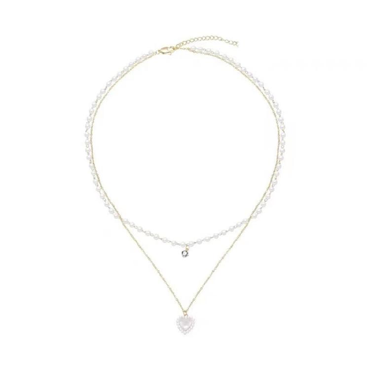 Love Heart Pendant Necklace with Pearls Women Neck Jewelry Alloy Texture Beads Necklace Suitable for Parties and Wedding