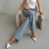 Dámské rozšiřující se džíny Světlý odstín Krajkový detail kapsy Vysoký pas Džínové kalhoty