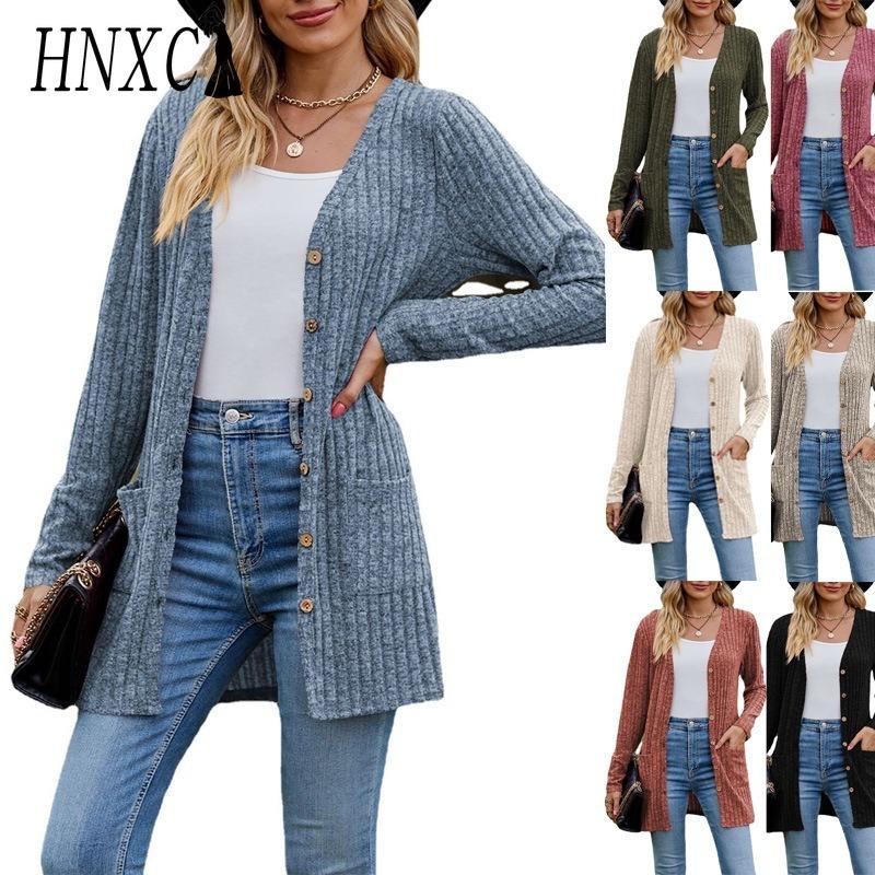 HNXC Dámské vintage ležérní jednobarevné bundy a kabáty podzim zima s dlouhým rukávem