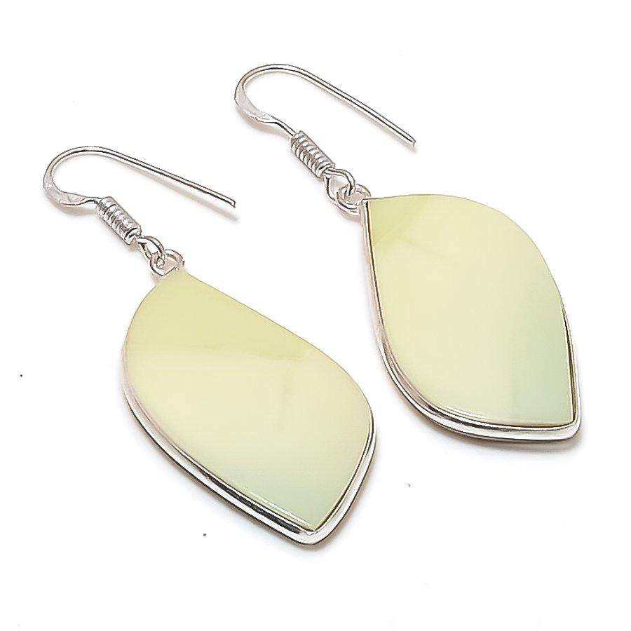 Natural Swiss Green Opal Gemstone 925 Sterling Silver Earring 1.97" AE-11583