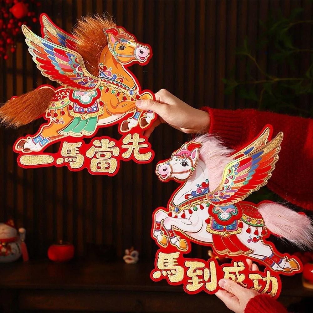 Chinese Style Zodiac Horse Wall Stickers Traditional Cartoon Fu Character Sticker Paper Blessing Spring Festival Decorations