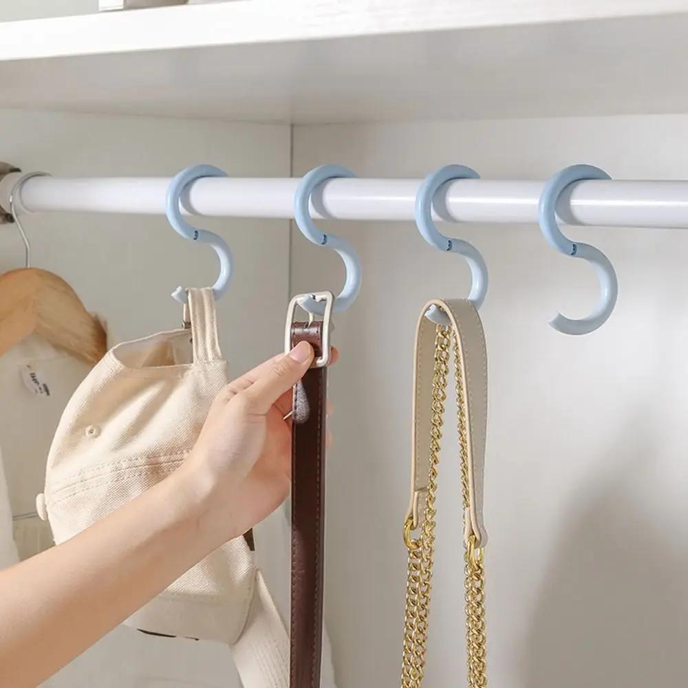 4Pcs Versatile Plastic S-Shaped Hooks Punch Free Hanging Railing S Hanger Foldable Windproof Clothes Handbag Hook Kitchen